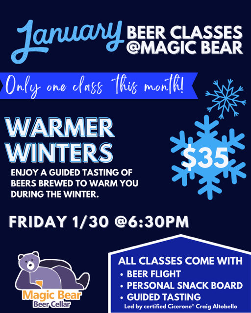 This event has ended. Sign up for updates on future events from the Botanical Gardens. Name(Required) First Last Email Question/Comment January 30, 6:30 pm - 7:30 pm Cost: $35 Location: Magic Bear Beer Cellar 799 Seneca St Suite B, Buffalo, NY 14210 Enjoy a guided tasting of beers brewed to warm you during the winter. Register here. Magic Bear Beer Cellar 799 Seneca St Suite B, Buffalo, NY 14210 (716) 844-8637 Website Casual bar and bottle shop featuring a wide beer selection, plus bar bites and educational tastings and classes. Presenting free Trivia on Thusdays. Open for Buffalo Bills games.